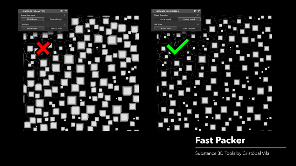 This tool allows ‘dirty cheap’ packing of shapes close to a circle or a square, so that they do not overlap. Specially useful combined with a Cells 2 voronoi node.