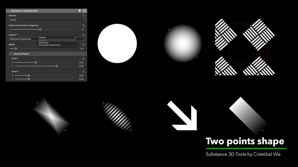 The basis for this node was shared by Nicolas Miquel in the Facebook group “Inside the Node”. I have added some features, such as the possibility to use a regular size for shapes or a stretched control with options for a “free” stretched or a proportional one. See video above all, to better understand the differences.